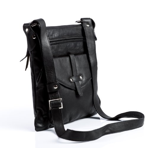 BACCINI Umhangetasche SUE - Ledertasche mit Schultergurt FLACH - Schultertasche - echt Leder schwarz