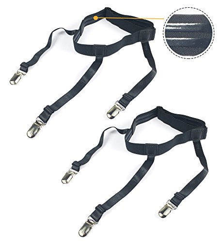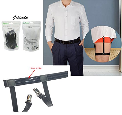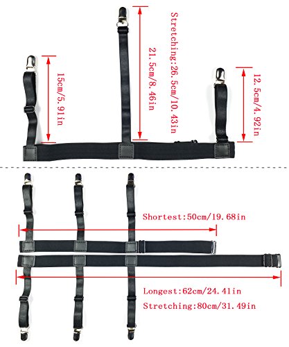 Jelinda® New Style Men's Adjustable Dress Shirt Stays Suspenders Shirt Tucked in Shirt Garters Keeper with Non-slip Locking Clamps and Medical Silicone Specifications: Material:High quality nylon and premium-quality metal clips Size Chart : Adjustable belt (relax) :50-62cm/19.69"-24.4",maximum can be stretched to 80cm/31.49" Garter length(relax): 15-21.5cm/5.91"-8.46", maximum can be stretched to 26.5cm/10.43" Package Included: 1 pair of Jelinda Shirt Stays