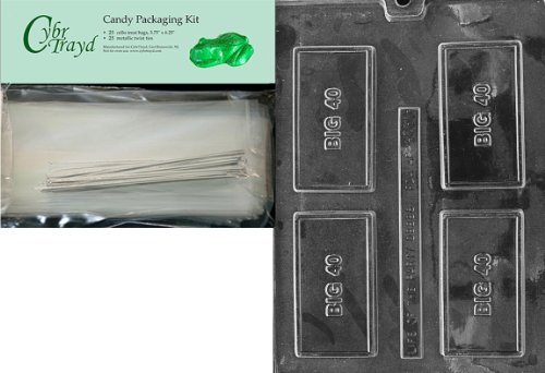 Cybrtrayd "Big 40" Business Card Chocolate Candy Mold with Packaging Bundle of 25 Cello Bags, 25 Silver Twist Ties and Chocolate Molding Instructions