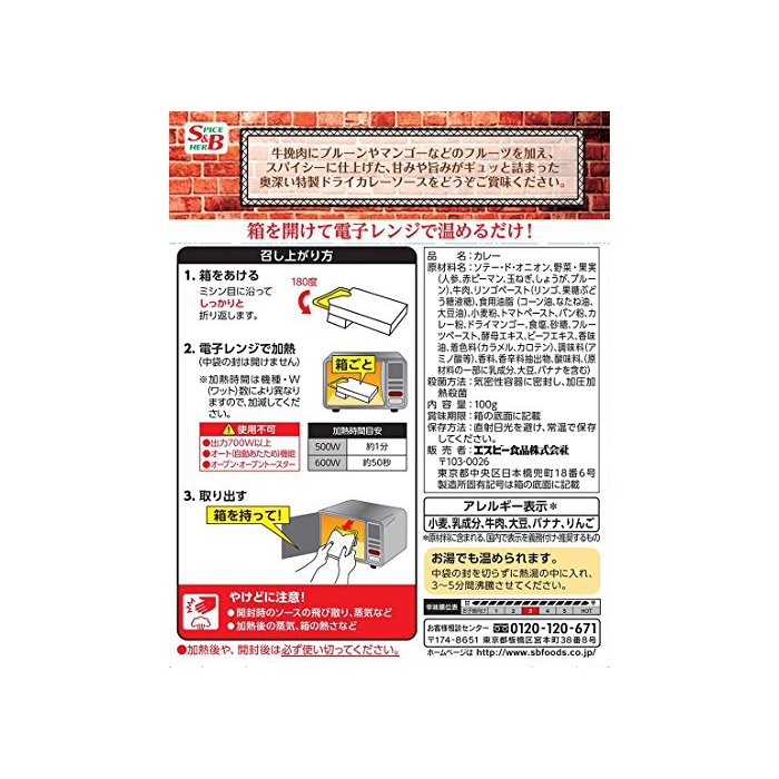 원본상품명: S&B 本日の贅? 甘熟フル?ツドライカレ? 中辛 100g×6個