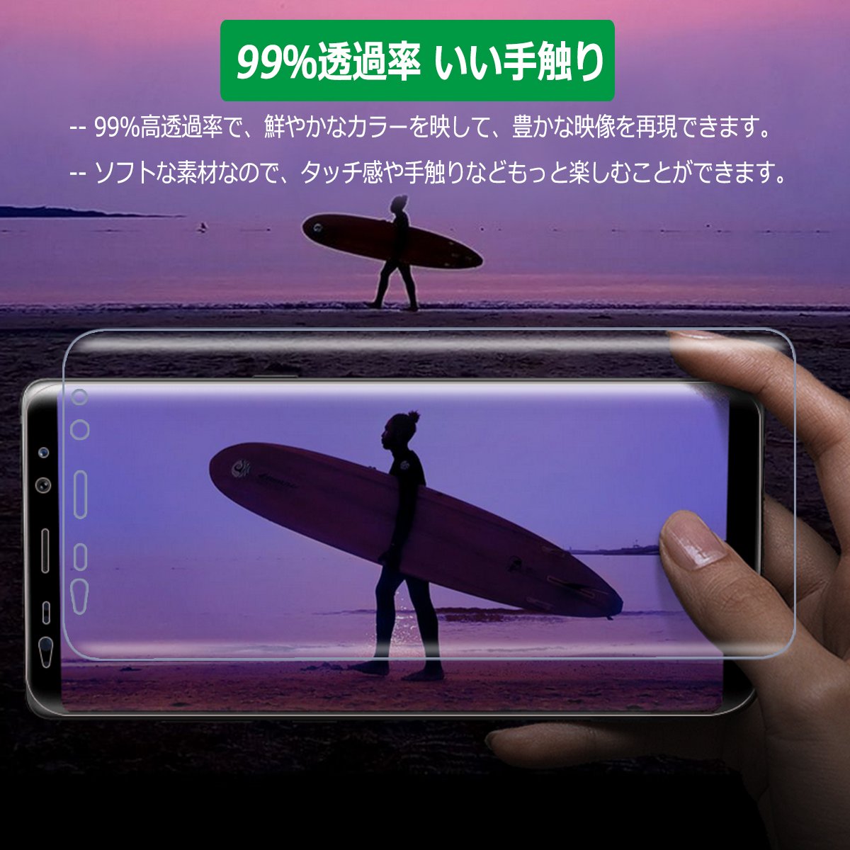 You can experience comfortable operation and reflection of beautiful screens with high transmittance protective film, and it is also possible to reproduce vibrant colors.
