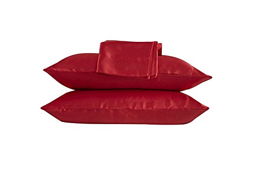 Prime Home Decor 100% Luxuriously Soft and Smooth Satin Wrinkle Resistant Bedding Sheet Set (King, Red)