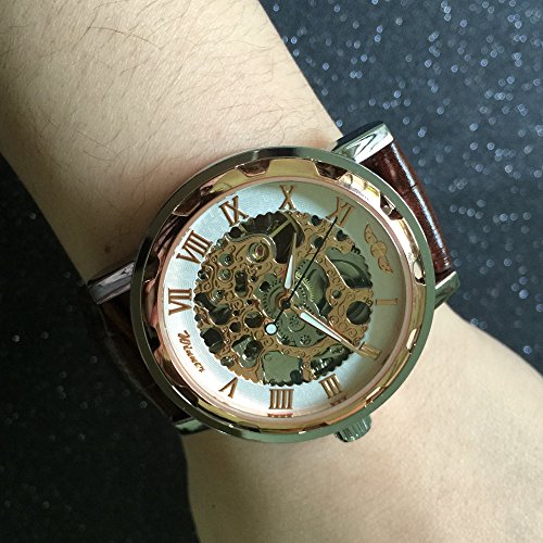 -. Title : GOHUOS Unisex Skeleton Hollow Hand-Wind Mechanical PU Leather Wrist Watches for Men/Women-Brown