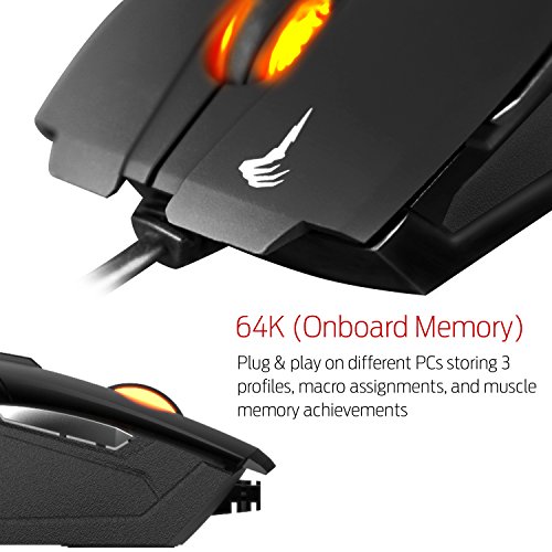 -. Feature : 2000 DPI pixel perfect accuracy / Optical & laser sensor / Polling rate up to 1000 Hz / 6 Smart Keys; 5 programmable keys for strategic assignment of macros, profiles, keyboard keys, media controls, windows functions / 64k onboard memory stores 6 profiles, memory and achievements