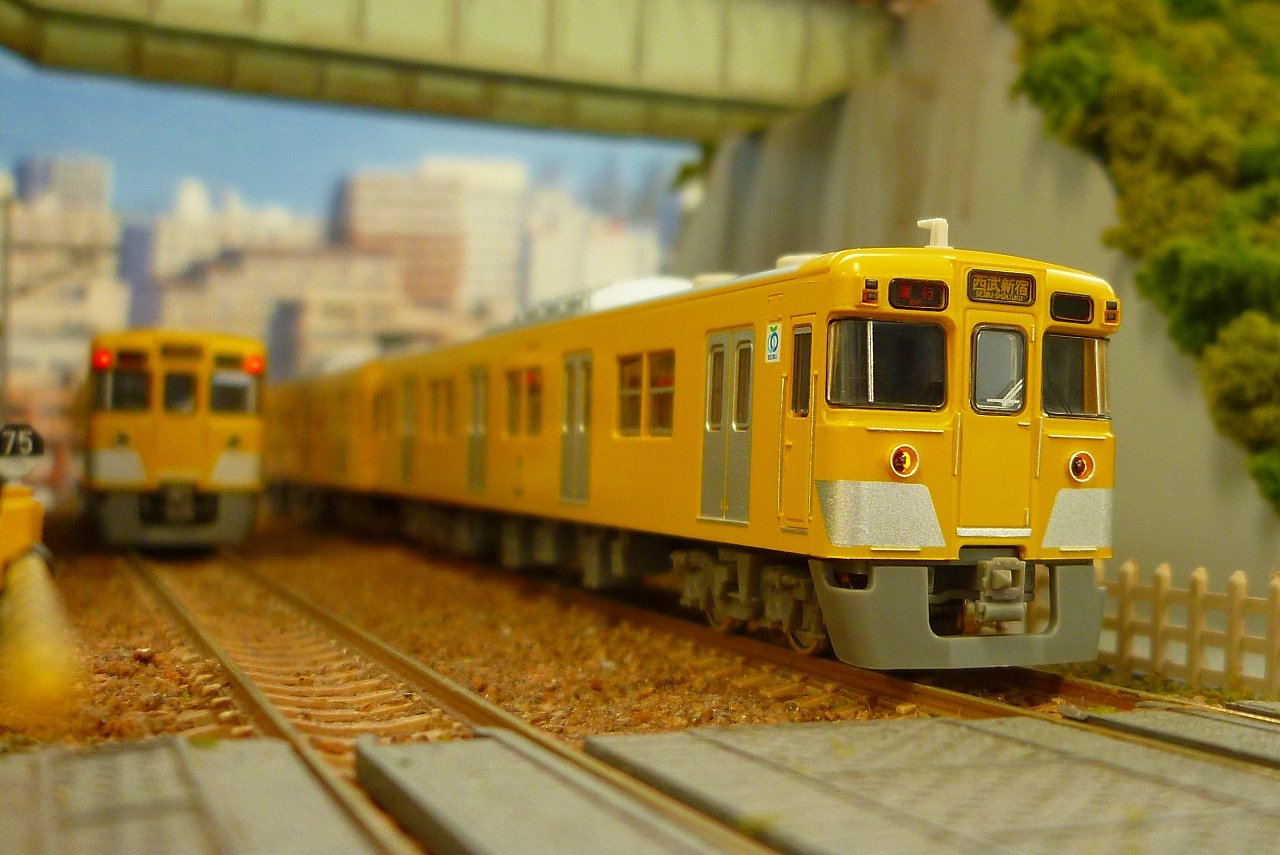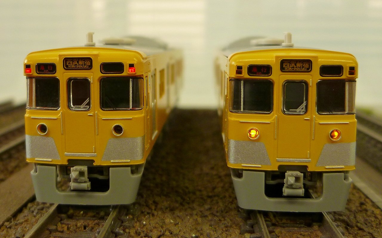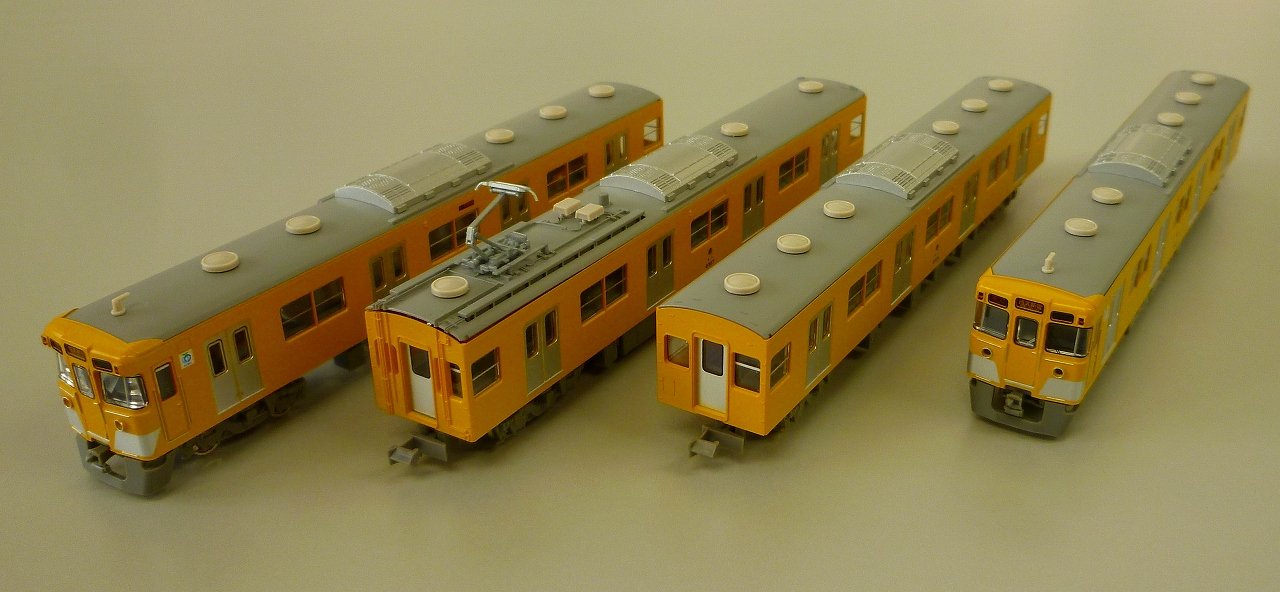 Lineup of 6 car train similar to actual car, leading car 2 car train for addition, 8 car train (Basic 4 car train set, 4 wheel sets of add-on intermediate car).