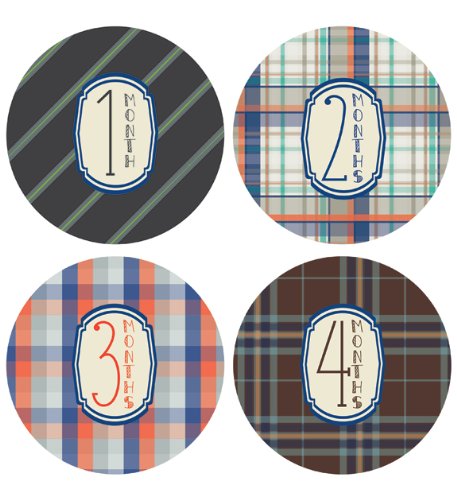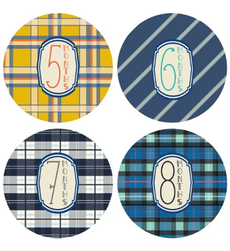 -. Title : Lucy Darling Shop Monthly Baby Sticker - Baby Boy - Plaid Design - Months 1-12