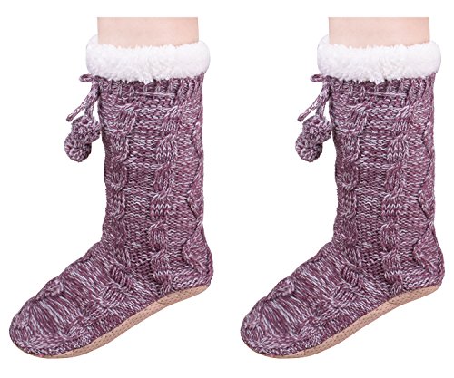 -. Title : Non Skid Bedroom Slippers Fuzzy House Shoes Cable Knit Slipper Socks for Women
