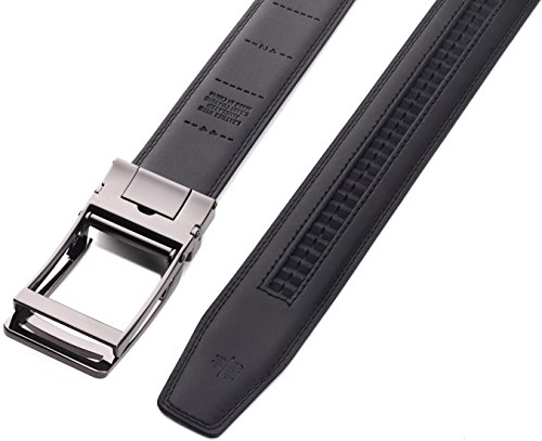 EXACT-FITTING: No More Holes in the strap any more.This belt provides a 32 unique sliding positions in the ratchet of strap which enable you a micro adjustment to adapt your waist variation. The Idea Size Mark on strap and Easy Ratchet Design in buckle, which allows you simply to take off the strap from buckle and cut it for your desired waist size;