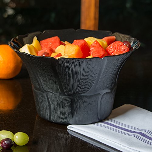Carlisle Petal Mist bell bowl. Petal Mist's delicate design gives an elegant appearance; perfect for buffets, food bars, delis, poolside, and catering. Made of tough, break-resistant polycarbonate. Textured exterior hides scratches, easy-clean smooth interior. Safe for use in freezers and in temperatures from -40 to 212 degrees F; dishwasher safe. NSF listed trays are perfect for buffets or displaying catered foods. Made in the USA.Feature