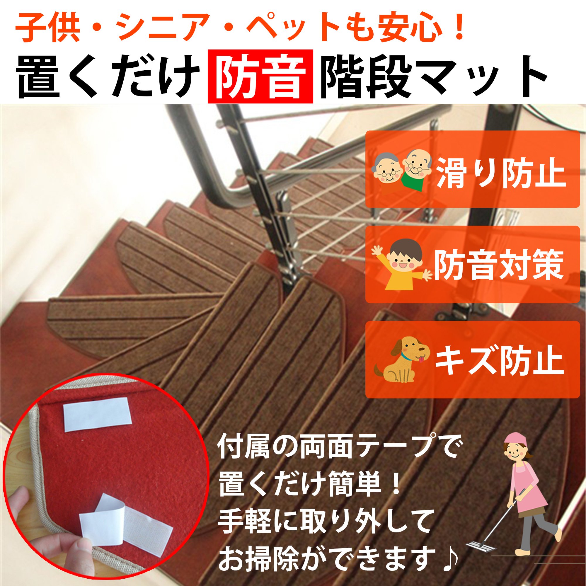 It is a stair mat of a fashionable coffee color border pattern.