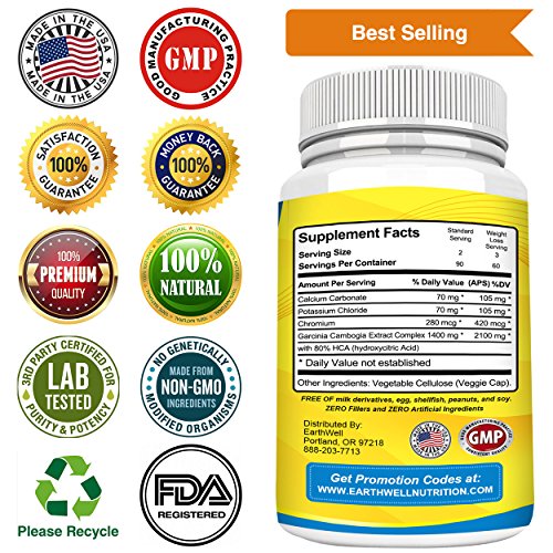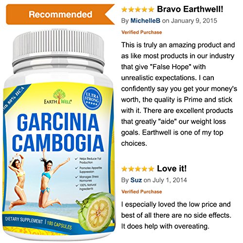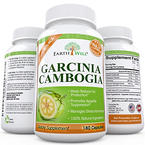 -. Binding : Health and Beauty -. Brand : Earthwell -. Feature : Highly potent fat buster. Slows down fat production. Clinically proven to help suppress appetite, burn fat more efficiently and lose weight. / 100% natural ingredients - no side effects. Garcinia cambogia extract is very safe as the tamarind fruit utilized to make the supplement has been used in cooking and traditional medicinal treatment for hundreds of years. Zero Fillers, Zero Binders, Zero Artificial Ingredients. / Doctor Oz recommends garcinia cambogia supplements as "The Newest, Fastest Fat-Buster"! / Favors good cholesterol. Studies show that patients taking garcinia cambogia supplements daily had a decrease in total colesterol as well as triglycerides and LDL (the bad cholesterol), plus an improvement in HDL (the good colesterol). Some obese patients also saw improvement in insulin resistance and leptin resistance (which are hormones that help us eat less). / Great for emotional eaters as it manages stress hormone levels such as serotonin and cortison, decreasing cravings for sugar and carbs. This also leads to better sleep and better mood, and gives an increase in energy. -. Label : Earthwell -. Manufacturer : Earthwell -. PackageQuantity : 1 -. ProductGroup : Health and Beauty -. ProductTypeName : HEALTH_PERSONAL_CARE -. Publisher : Earthwell -. Studio : Earthwell -. Title : Garcinia Cambogia Extract Pure with 80% HCA Natural Weight Loss Supplement