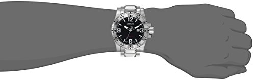Sleek. Versatile. Classic. These are just a few characteristics that make the Invicta Men's Reserve Collection Venom Diver Stainless Steel Watch #5672 a great timepiece for the man who wants substance with a huge helping of style. The silver-tone, tiered stainless steel band is complemented by a round, stainless steel bezel, which is etched with black numbers in five minute increments. The black dial features bold, luminous Arabic numbers at three, six, nine and 12 o'clock, and a calendar window at three o'clock. The dial also has luminous hands and a slender sweeping seconds hand. This watch is water resistant to 660 feet (200M).Reserve Collection