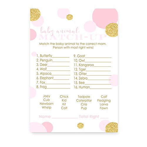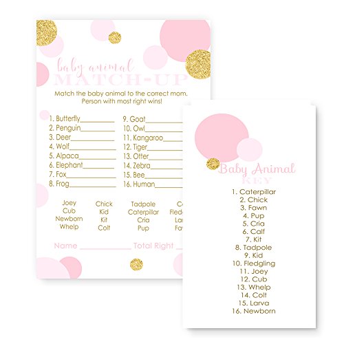 Pink and Gold Baby Shower Game Animal Match ( 25 Pack )