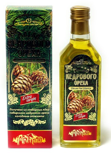 Natural organic cold-pressed pine nut oil has a number of beneficial properties. It is rich in Omega-3 and Omega-6 fatty acids and promotes cell metabolism which leads to increased health of internal organs, skin, hair and nails. The brand name "Siberian Pine Nut Oil" stands for business integrity, decency and the highest possible quality of product. All products marketed under this brand name convey the primordial power of Nature and the warmth of our hearts. We offer: - A variety of high-quality pine products, including pine nuts, pine flour and pine nut oil. Huge plantations of pine trees grow in the Siberian taiga, said to be the ecologically purest area of the world. The virgin forest of the taiga has never been treated with any chemicals or artificial fertilisation, nor abused by agricultural machines. Pine nuts (the seeds of the pine tree) take two years to mature, during which time the tree accumulates a huge volume of positive cosmic energy. Crops of nuts are harvested manually by people lovingly devoted to this task, working in a pleasant environment without undue haste to create unique products full of positive energy reflecting the infinite powers of Nature.Feature