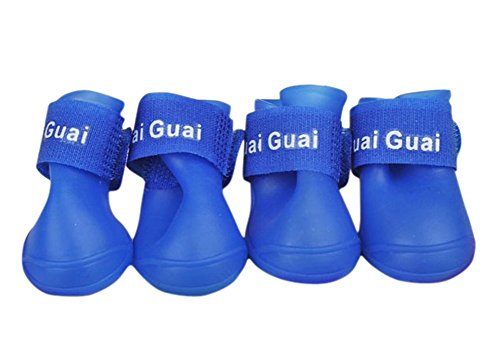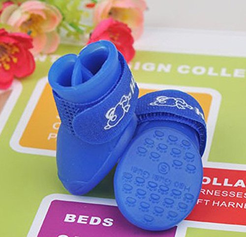-. Feature : Material: Environmental PVC. / Color: Blue, Black, Purple, Green, Rosyred. / Easy to wear, convenient, soft and comfortable. / Adjustable velcro straps keep them snug and secure. Package: 1 set of Pet Shoes for 4 paws. / Perfect gift for your pet dog.
