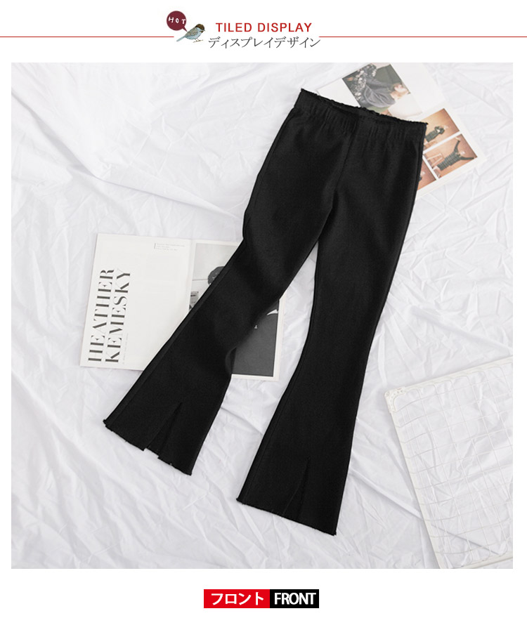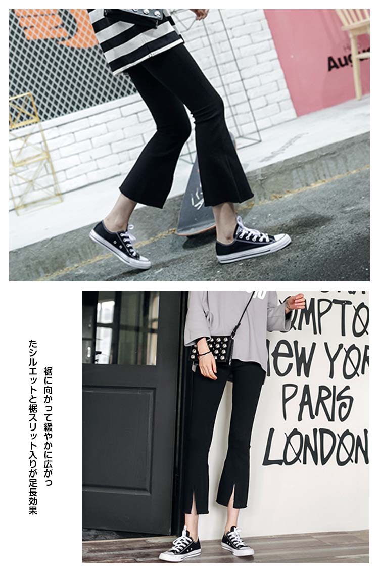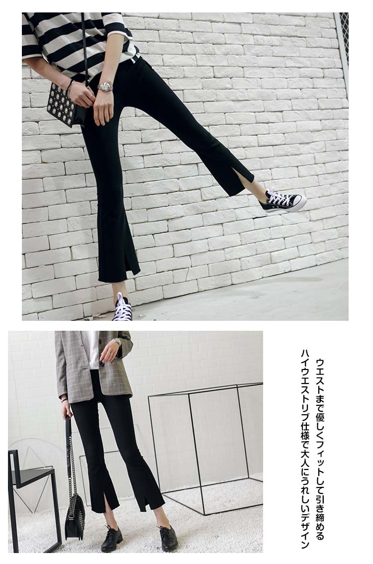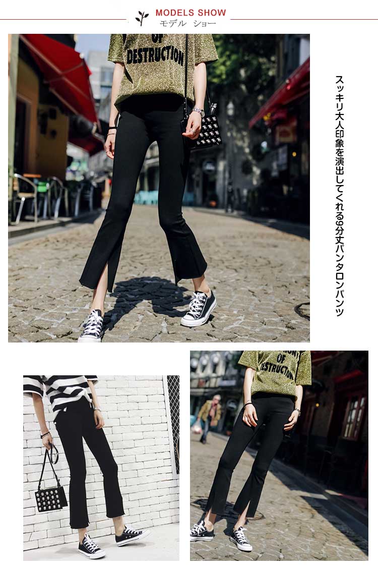 | スッキリ大人印象を演出してくれる9分丈パンタロンパンツ裾に向かって緩やかに広がったシルエットと裾スリット入りが足長効果ウエストまで優しくフィットして引き締めるハイウエストリブ仕様で大人にうれしいデザイン | |