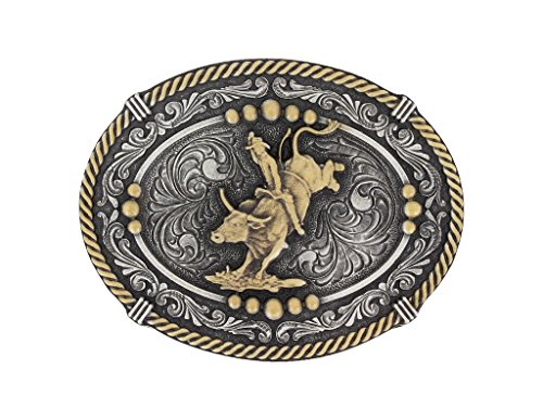 Studio : Montana Silversmiths Publisher : Montana Silversmiths Binding : Apparel Product Description The Montana Silversmiths brand produces product for men and women who are proud of their heritage and that are willing to stand up for their country. This buckle has a gold tone twisted rope edge, classic western filigree on the trim, five large gold finished beads, and an antiqued gold finished bull rider in the center. Show your love of the rodeo with this bull rider buckle from Montana Silversmiths. 0