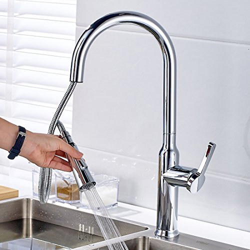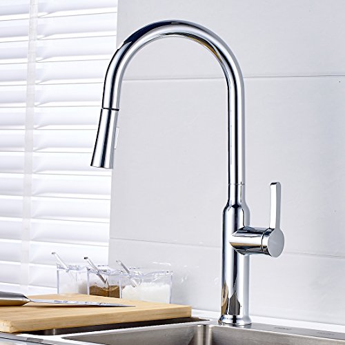 FLG Chrome Pull Down Sprayer Kitchen faucet, Single Handle Kitchen Sink Faucets Without Deck Plate
