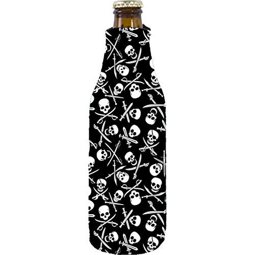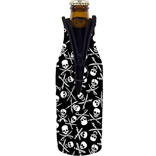 Coolie Junction Pirate Pattern Neoprene Collapsible Zipper Beer Bottle Coolie