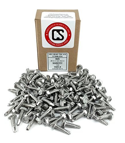 Stainless #10 X 3/4" Tek Screw (100 pcs)) Hex Washer Head Self Drilling Sheet Metal Tek Screws With Drill Point, 410 Stainless Steel, Self Driller, 100 pieces