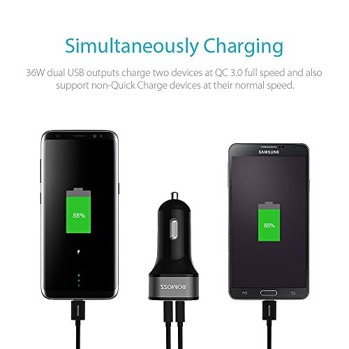 - DUAL USB OUTPUTS: 36W dual USB outputs ensure the fastest charging speed for 2 smartphones, tablets, or QC compatible devices simultaneously, also charges non-Quick Charge devices at their normal speed.