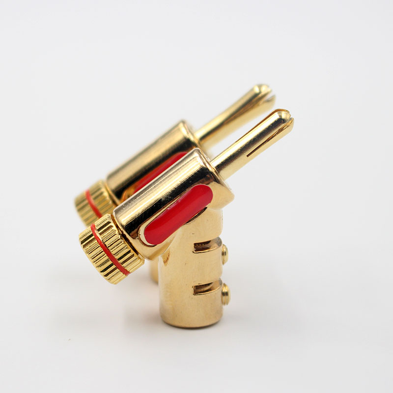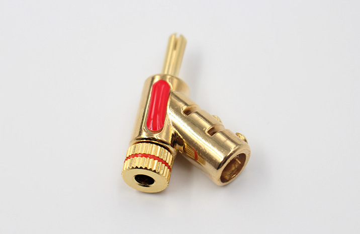 ナイナスドライバーを使って上下2本のネジでロックするタイプのバナナプラグジョイントです。
