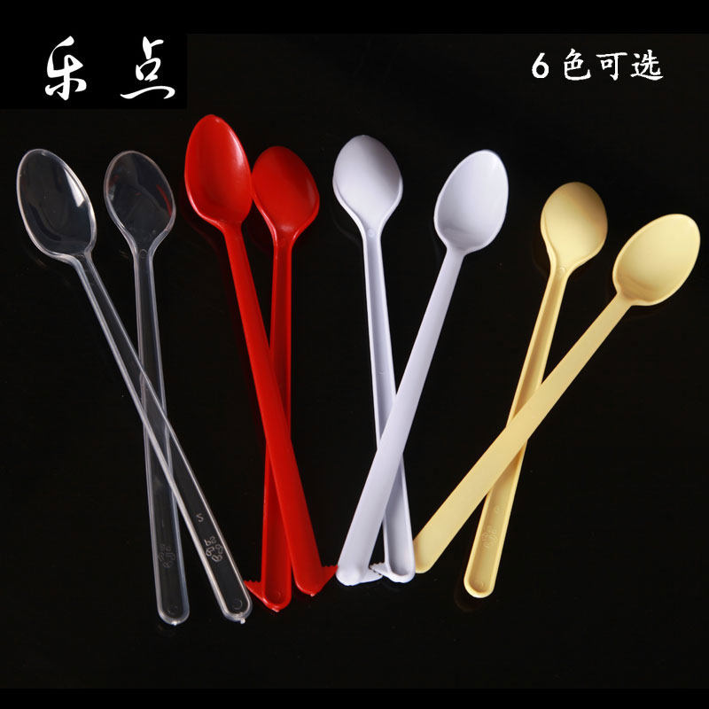一次性长柄勺 冰淇淋勺 蛋糕勺 长柄冰勺西餐勺调羹 65支6色 ?