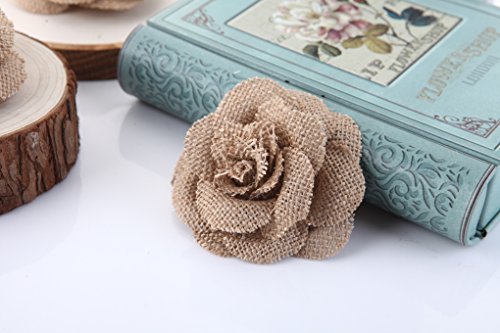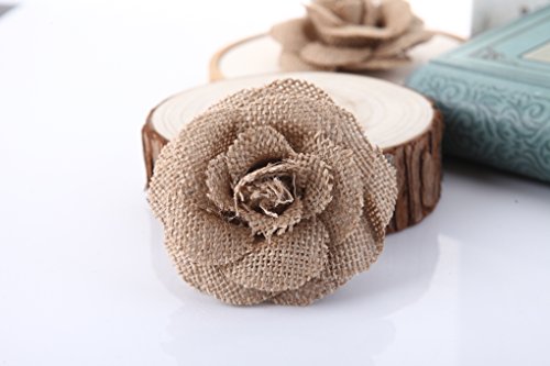 Handmade Burlap Flowers with Lace Craft YW (Pack of 12) (Style #7)