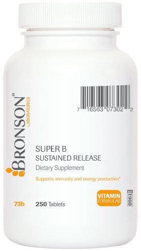 -. Binding : Health and Beauty -. Brand : Bronson Vitamins -. EAN : 0716563073022 -. Feature : SUSTAINED RELEASE FORMULA: Slowly releases over 6-8 hours to provide a steady balanced stream of B vitamins (Vitamin B2, B3, B6, B9, B12) / ENERGY: Maintain healthy energy levels throughout the day with B Complex supplements. / POWERFUL: Helps promote healthy skin , eye, hair, nerve, liver and muscle tone in the gastrointestinal tract. / MADE IN USA - Manufactured to the highest quality standards in FDA certified laboratories. / 100% SATISFACTION GUARANTEE - 100% Customer satisfaction, money-back guarantee -. IsAdultProduct : 0 -. Label : Bronson Laboratories -. Manufacturer : Bronson Laboratories -. MPN : 73B -. PartNumber : 73B -. ProductGroup : Health and Beauty -. ProductTypeName : HEALTH_PERSONAL_CARE -. Publisher : Bronson Laboratories -. Studio : Bronson Laboratories -. Title : Bronson Labs: Super Vitamin B Complex Sustained Slow Release (Vitamin B2, B3, B6, B9 - Folic Acid, B12), 250 Super B Tablets, Made in USA -. UPC : 716563073022