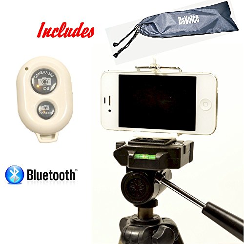 -. Feature : COMBO PACK SPECIAL - Comes with Cell Phone Tripod Adapter Mount, Bluetooth Remote Control and Travel Bag that works with most iPhone, Android, iPod devices! Most phones don't even require you to download an app to use this Bluetooth remote. / CELL PHONE TRIPOD ADAPTER fits phones from 2.17" to 3.37" wide such as: iPhone SE 6S 6S Plus 6 6 Plus 5S 5C 5 4s 4 as well as Samsung Galaxy S7 S6 S5 S4 S3 S2 Note 2 and many others. Voted Best iPhone Tripod Mount - Voted Best iPhone 6 Tripod Mount - Voted Best iPhone 5 Tripod Mount - Phone Tripod Mount fits most phones like the iPhone 5 Tripod Adapter without having to remove them from their protective cases. / SUPER EASY TO USE Bluetooth Wireless Camera Shutter Remote Control is compatible with iOS 6.0 or newer (iPhone SE 6S 6 Plus 5S 5C 5 4s 4, iPad 3, 2, iPad mini, iPod touch 4th generation or newer) and Android 4.2.2 OS or newer (Samsung Galaxy S2, S3, S4+, S5, S6, S7, Note 1, Note 2, Note 3+, Tab 2, Note 8, 10.1+) and other Android phones. Bluetooth 3.0 remote (2.4GHz-2.4835GHz) - Also is compatible with Sony Xperia S, HTC New One and X+ and other Android devices. / ATTACHES TO ANY STANDARD TRIPOD for recording video, taking pictures, or to use your phone as a webcam. This Phone Tripod Adapter will also attach to mini-tripods. (attaches via universal 1/4-20 standard screw attachment to the iPhone Tripod Head) Phone screen is untouched by the iPhone Tripod Connector, so you don't have to worry about scratching, cracking, or leaving marks on the screen. / BUY MORE SAVE MORE - We love our customers and want them to love us too. When you buy any 2 DaVoice products of any combination (cell phone tripod adapters, flexible tripods, tablet tripod adapters, Selfie Sticks or Cell Phone Car Holders), receive 5%, buy 3 and receive 10%, or buy 5 or more and get 20% automatically at check out. Buy for a friend or loved one and save together. Great Birthday Gift.