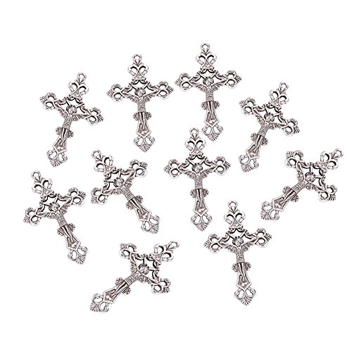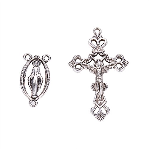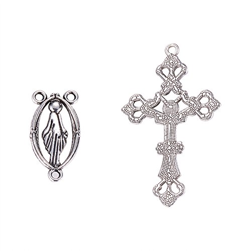 Pandahall 10sets Rosary Cross and Center Sets for Rosary Bead Necklace Making, Alloy Crucifix Cross Pendants and Virgin Links Antique Silver