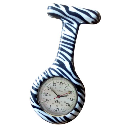 JAS Unisex Nurses Lapel Watch Silicone (Infection Control) Zebra