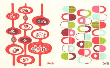 -. Title : 2 Swedish Dishcloths, Jenn Ski's Mid-Century Modern Red Pods & Half Pods