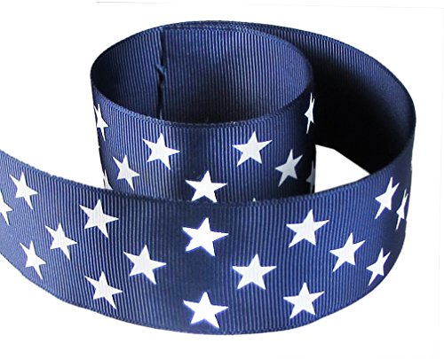 HipGirl 5yd 1.5" Patriotic Star School Cheer Leader Grosgrain Ribbon--Navy/White. For High School, College Cheer Bows