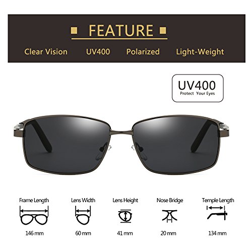 Product Features: 1.Metal Frame: The frame of this ultra lightweight rectangular mens polarized sunglasses is made of Al-Mg Alloy metal which are lightweight and strong.