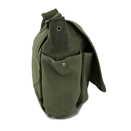 -. Brand : Army Force Gear -. Color : Olive -. Department : unisex-adult -. EAN : 0014567414279 -. Feature : Durable, Heavy Duty, A Spacious Messenger Bag. Approx Dimensions: 15" x 11" x 6" (W x H x D). / The bag has a large main compartment that can hold a 15.6" laptop, the interior is has a zipper pouch for keys wallet or phone. On the outer part - four outside pockets for a water bottle, phone charger / Comfortertble to carry - 2" Wide Adjustable Shoulder Strap with Brass Hardware making it easy to carry if you are tall or short / FREE GIFT - Each bag comes with a free Punisher Survival Pocket Tool Key Ring Beer opener / This cool bag is Made from a military grade heavyweight cotton canvas, so it should last for some time. -. Label : Army Force Gear -. Manufacturer : Army Force Gear -. Model : GS009148 -. MPN : GS009148 -. PackageQuantity : 1 -. PartNumber : GS009148 -. ProductGroup : Apparel -. ProductTypeName : LAGE -. Publisher : Army Force Gear -. Size : One Size -. Studio : Army Force Gear -. Title : Army Force Canvas Messenger Shoulder Bag in Military Olive Green - Comes With A FREE PUNISHER SURVIVAL TOOL! -. UPC : 014567414279