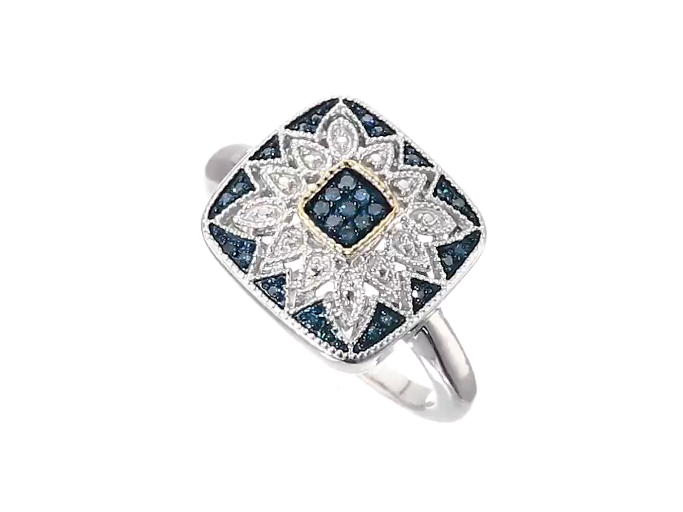 Sterling Silver and 14k Gold Black or Blue Diamond Square Ring (1/7 cttw)