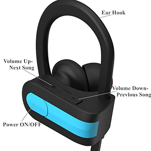SUPER SOFT SECURITY HOOKS and IPX-4 SWEAT-PROOF DESIGN: the Bluetooth earbuds support sweat proof technology, could withstand dripping sweat and in the light rain.