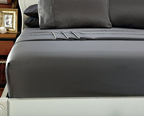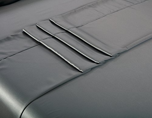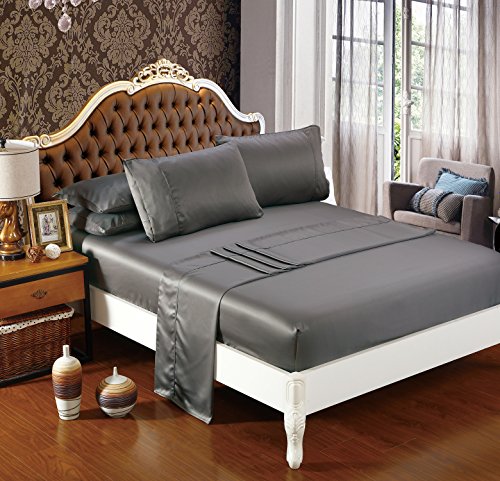 DelbouTree Silky Soft Solid Matte-Satin Bed Sheet Sets Shiny-Free,Deep Pocket Queen 4 Pieces, Dark Gray