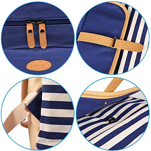 Backpack Compartments: one main pack with laptop compartment, two sides pockets, one front pocket. Can fit 14 inch Laptop, you can hold laptop, Ipad, daily use products, books, and some small accessories in inner small pockets, 2 side pockets you can hold your water bottles with juice, coffee and water, you can get it easily when you are thirsty, and the other side to hold the umbrella for you. Adjustable shoulder straps of Backpack and Shoulder Bag for good carrying, it is comfortable for you
