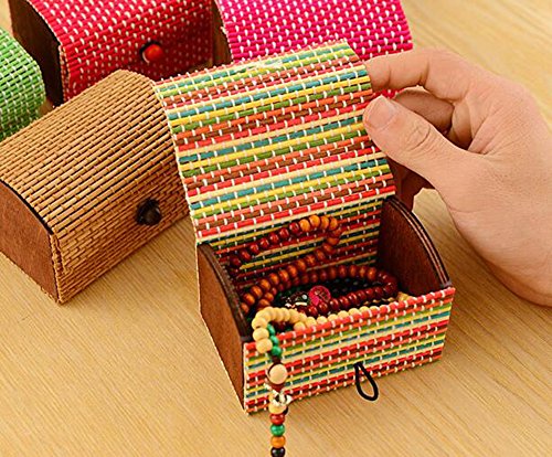 -. Feature : Material: Bamboo / Color:rainbow,hot pink,beige / Size: About 9(L) x 5.5(W) x 5cm(H) / Keep your goods organised and tidy / Store Necklaces, Bracelets, Earrings, Pendants, Coins, etc.