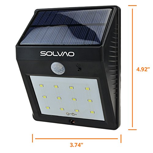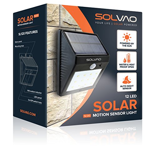 SOLVAO Solar Motion Sensor Light (12 LED) - Outdoor Security Lighting with Motion Activated On / Off Feature - Durable Waterproof & Heatproof Build - 800 mAh Solar Powered Rechargeable Battery