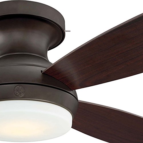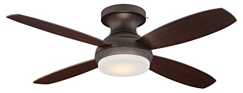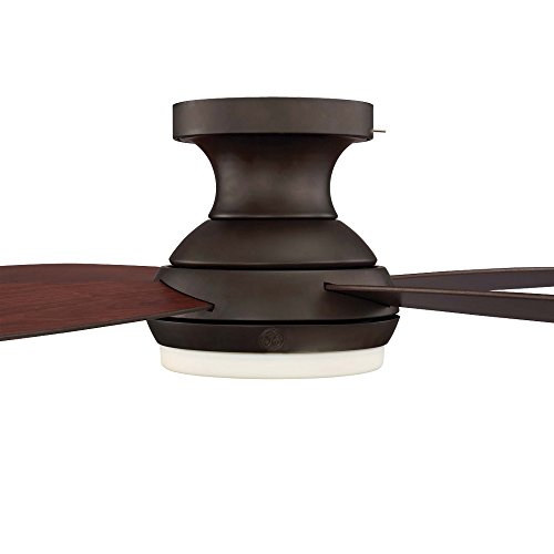The GE Pierson 52 in. Hugger Ceiling Fan has an updated design that will complement most any décor. The fan is available in brushed nickel or bronze finishes. The low-profile design allows installation on lower ceilings, and features the new and technologically advanced SkyPlugTM Mounting System to provide safe, quick and easy installation. This innovative Plug & Play feature eliminates complicated wiring, and allows the fan to be easily taken down, or switched out with a large variety of ceiling fans within seconds! The GE Pierson Fan has an integrated and dimmable 18W LED light kit (with a life span of over 25,000 hours) and includes a hand held 4-speed remote control, which operates the light and fan, and includes a reverse function and optional wall mount. The fan is built with high quality GE specifications and includes a limited lifetime motor warranty. To assist with installation, please refer to the Installation Video.Feature