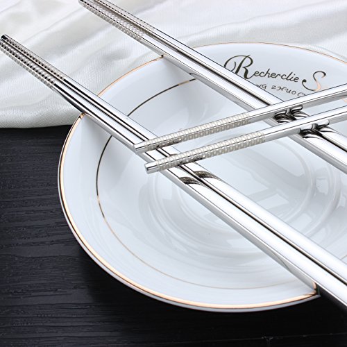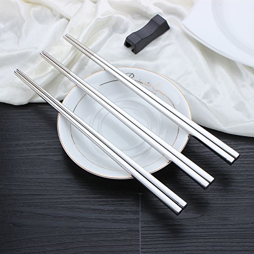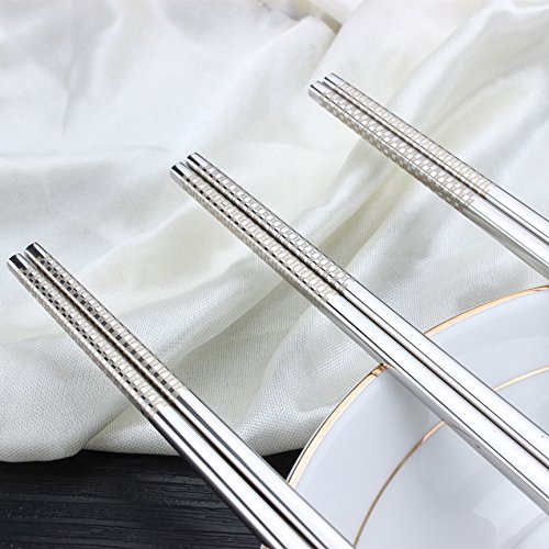 LIUNA High Quality Stainless Steel Chopsticks . Laser Non-skid Design Square Chopsticks . Seiko Polishing 10pcs(5pairs)