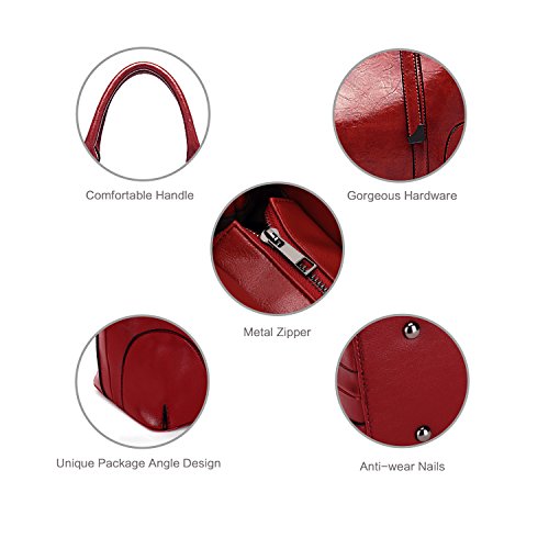 - MATERIAL: Made of high quality soft waxy leather, durable polyester lining, waterproof and colorfast. Top Metal Zipper Closure.
