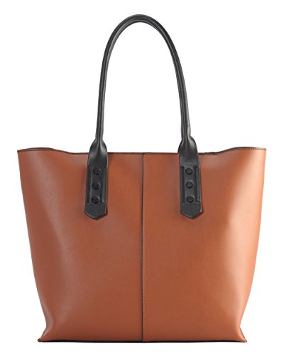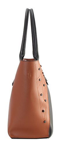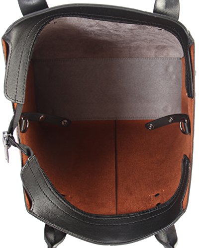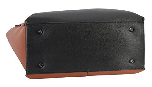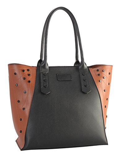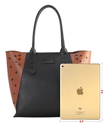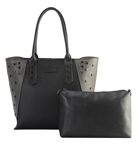 Diophy PU Leather Black Studded Décor 2 Tone Tote Handbag 2 Pieces Set XS1-6555