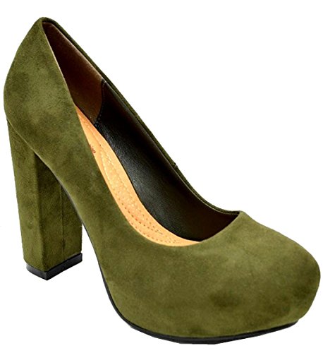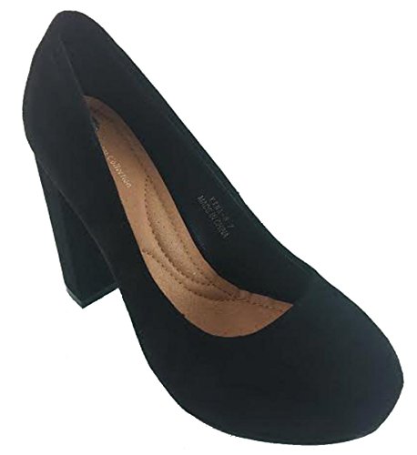 Product DescriptionElegant Footwear Women's platform closed toe pump features lightly padded footbed, 4" chunky heel hidden 1" front platform. Imported0
