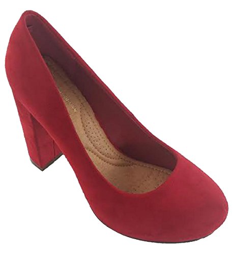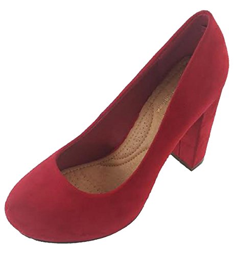 Elegant Footwear Women's Slip On Stacked Chunky Heel Round Toe Pump