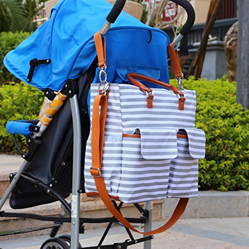 and includes 2 stroller hooks and 1 long strap, providing multiple carrying options and maximizing comfort. Complete with diaper bag inserts like a changing mat, bottle holder it makes time with your baby that much more enjoyable.
