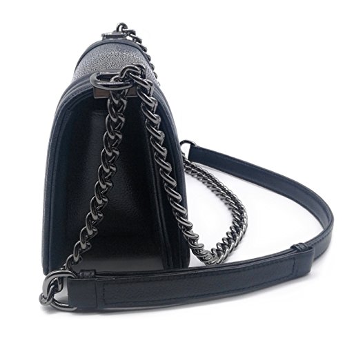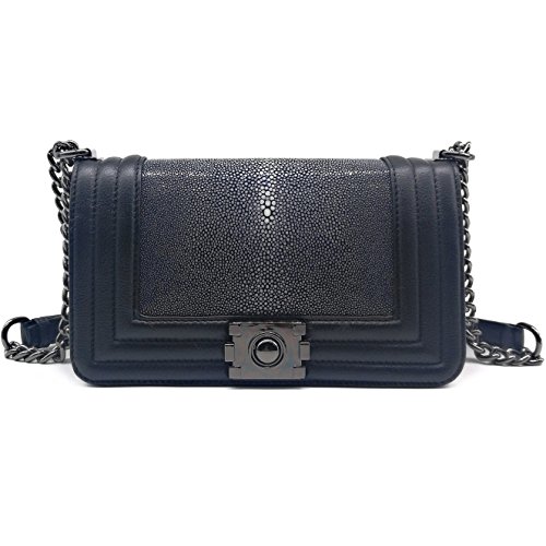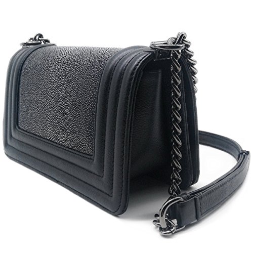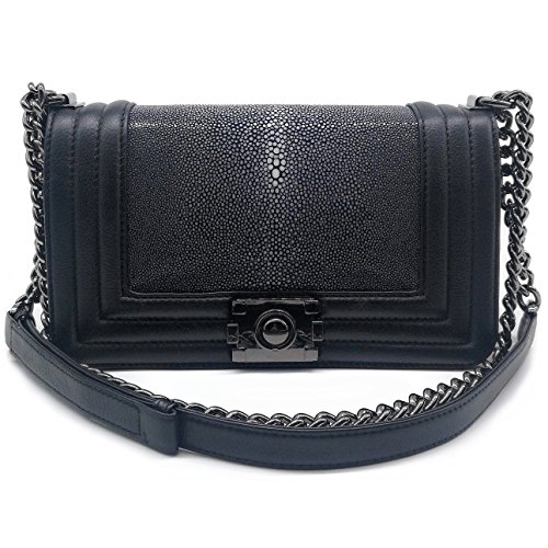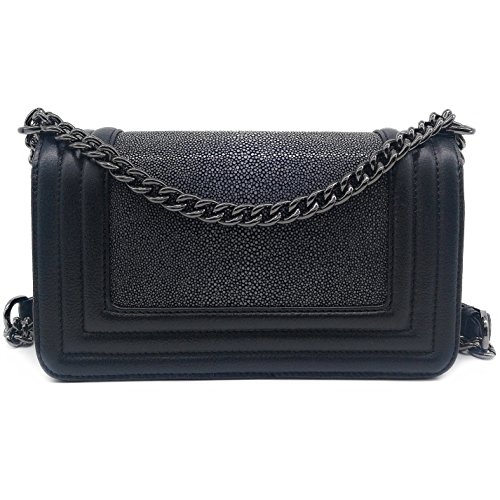 TREASURE Shoulder Bag Lady Stingray Genuine Leather Luxury Design Size 10 x 6 x 3.5 inches (Black)